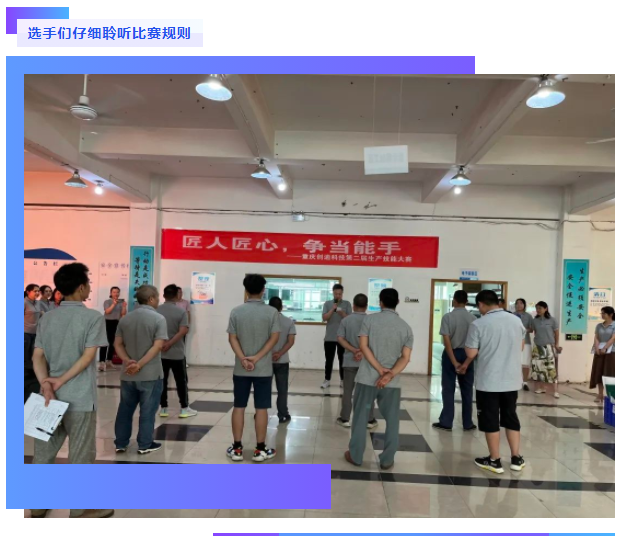 主持人張旺介紹了本次比賽規(guī)則:本次比賽包括了個(gè)人賽和團(tuán)體賽兩個(gè)項(xiàng)目,團(tuán)體賽參賽的有四個(gè)小組,參賽人員自行組裝產(chǎn)品,完成后交由檢驗(yàn)人員檢驗(yàn),評委組再根據(jù)時(shí)間、品質(zhì)、操作規(guī)范等多方面進(jìn)行評分。
