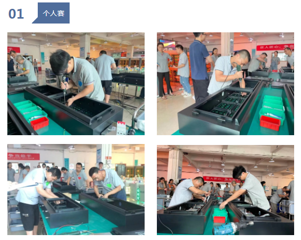 主持人一聲令下,比賽正式拉開了帷幕,只見各比賽人員手里不時(shí)變換著各種零件和工具∶螺絲釘、電鉆頭、單元板…雖然都是一樣的程序,但是每個(gè)人在工作中都總結(jié)出了自己的經(jīng)驗(yàn)和妙招。有的人在這個(gè)工藝駕輕就熟,有的人對那個(gè)工藝胸有成竹,你追我趕,真是八仙過海,各顯神通。每一個(gè)參賽選手都全神貫注,比賽現(xiàn)場雖然安靜,但處處透露著比賽的激烈。
